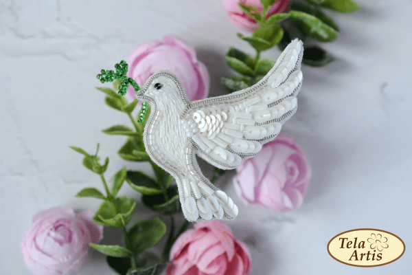 У набір для вишивки бісером брошки «Б-035 Голуб миру» від ТМ «Tela Artis» входить: