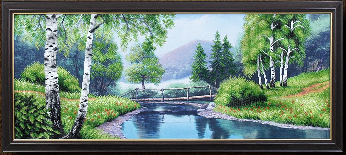 В набор входит: ткань с нанесенным рисунком, бисер (Чехия), игла, инструкция