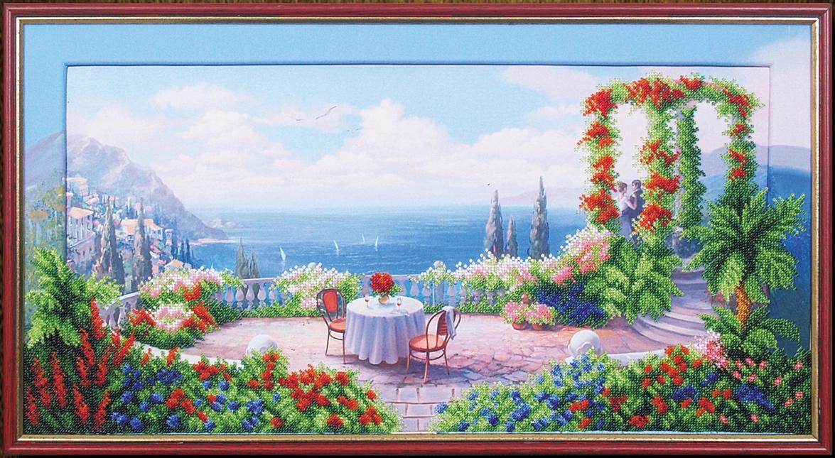 В набор входит: ткань с нанесенным рисунком, бисер (Чехия), игла, инструкция