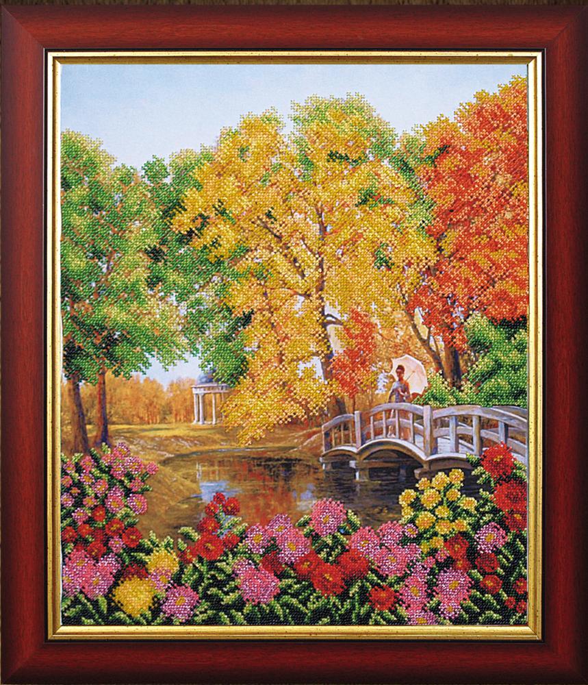В набор входит: ткань с нанесенным рисунком, бисер (Чехия), игла, инструкция