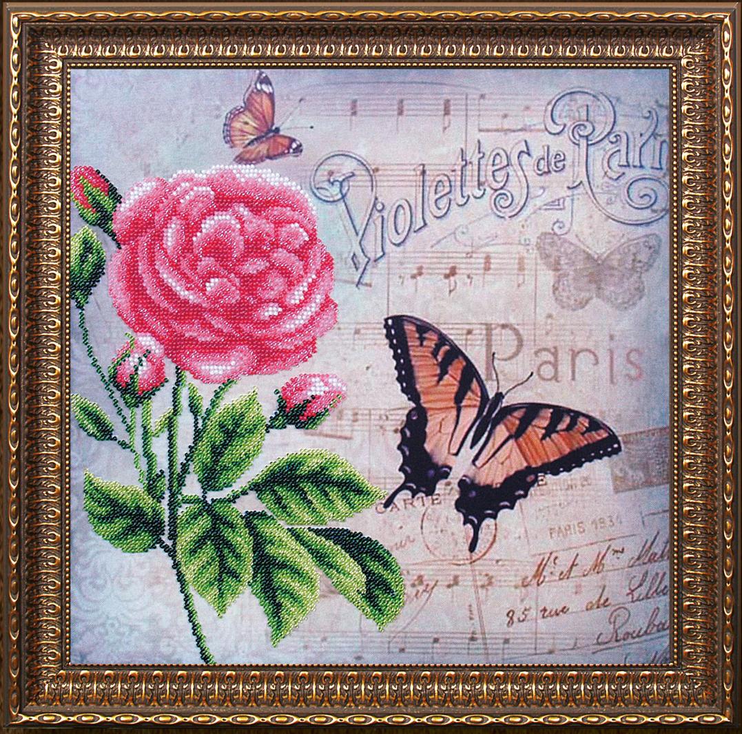 В набор входит: ткань с нанесенным рисунком, бисер (Чехия), игла, инструкция