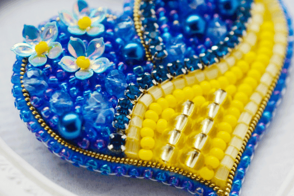 У набір для вишивки бісером брошки «Б-308 Українське серденько» від ТМ «Tela Artis» входить: