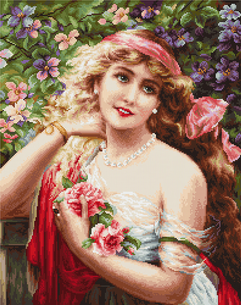 B549 Дівчина з трояндами. 28х35,5 см. Luca-S. Набір для вишивки хрестиком на Aida 18