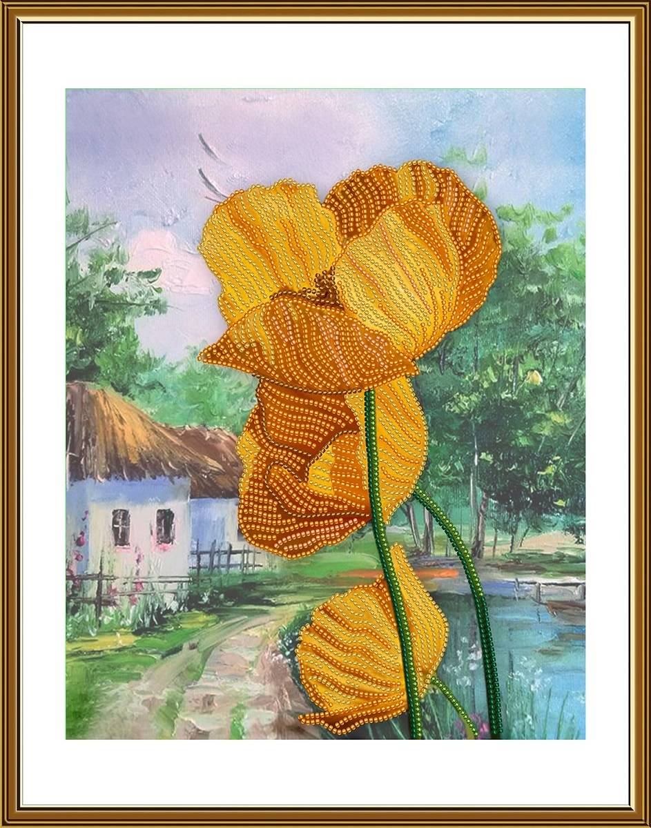 Набор содержит все необходимые материалы для выполнения вышивки — ткань с нанесенной схемой для вышивки, бисер, иглу, нитевдеватель, нить для пришивания бисера, инструкцию.