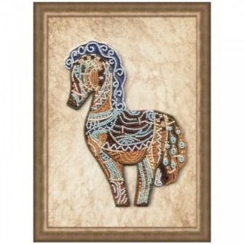 Набор содержит все необходимые материалы для выполнения вышивки — ткань с нанесенной схемой для вышивки, бисер, иглу, нитевдеватель, нить для пришивания бисера, инструкцию.
