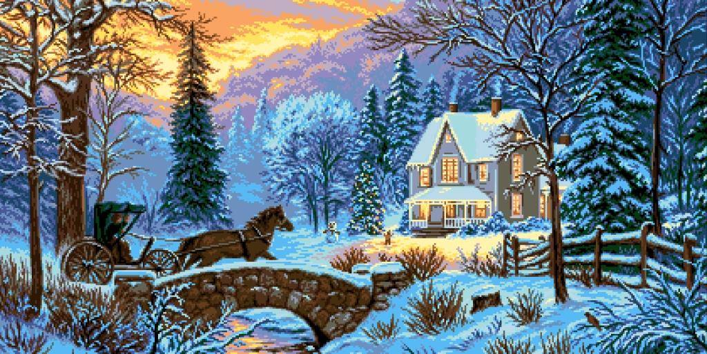 ДСЛ-1003 Панно. Волшебные Святки. Схема для полной вышивки бисером на атласе. ТМ Миледи.