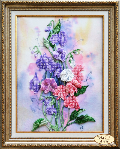 НВ-021 Набор для вышивки бисером с пришивной аппликацией Душистый горошек