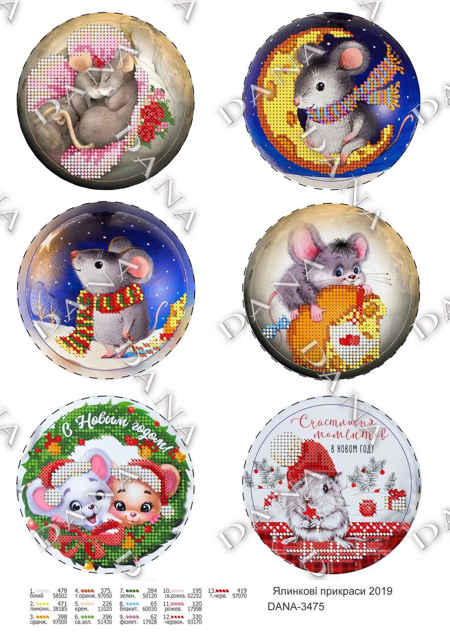 DANA-3475. Ялинкові прикраси (мишенята) Схема для вишивання бісером