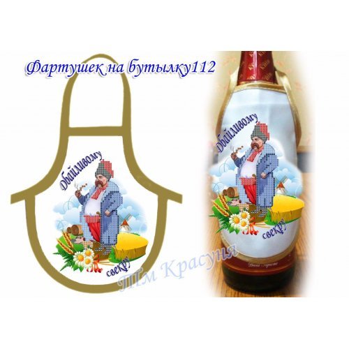 Готовый фартушек на бутылку для вышивки бисером либо нитью «Дбайливому свекру»
