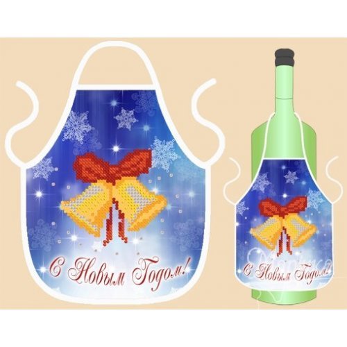 Готовый фартушек на бутылку с нанесенной схемой для частичной вышивки бисером