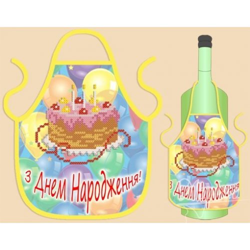 Готовый фартушек на бутылку с нанесенной схемой для частичной вышивки бисером