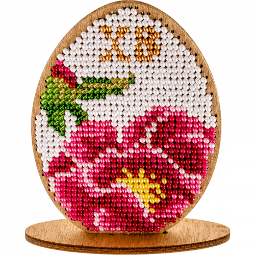 Усередині упаковки FLK-076 Великодній на підставці ви знайдете фігурну перфоровану заготовку, виконану з високоякісної фанери, інструкцію по роботі з набором, надруковану на папері схему для вишивання із зазначенням квітів і кількості бісеру, використовуваного в наборі, чеський бісер PRECIOSA, нитка і голки для вишивання бісером. Також набір може бути укомплектований фетром (для декорування задній частині виробу) або магнітом.
