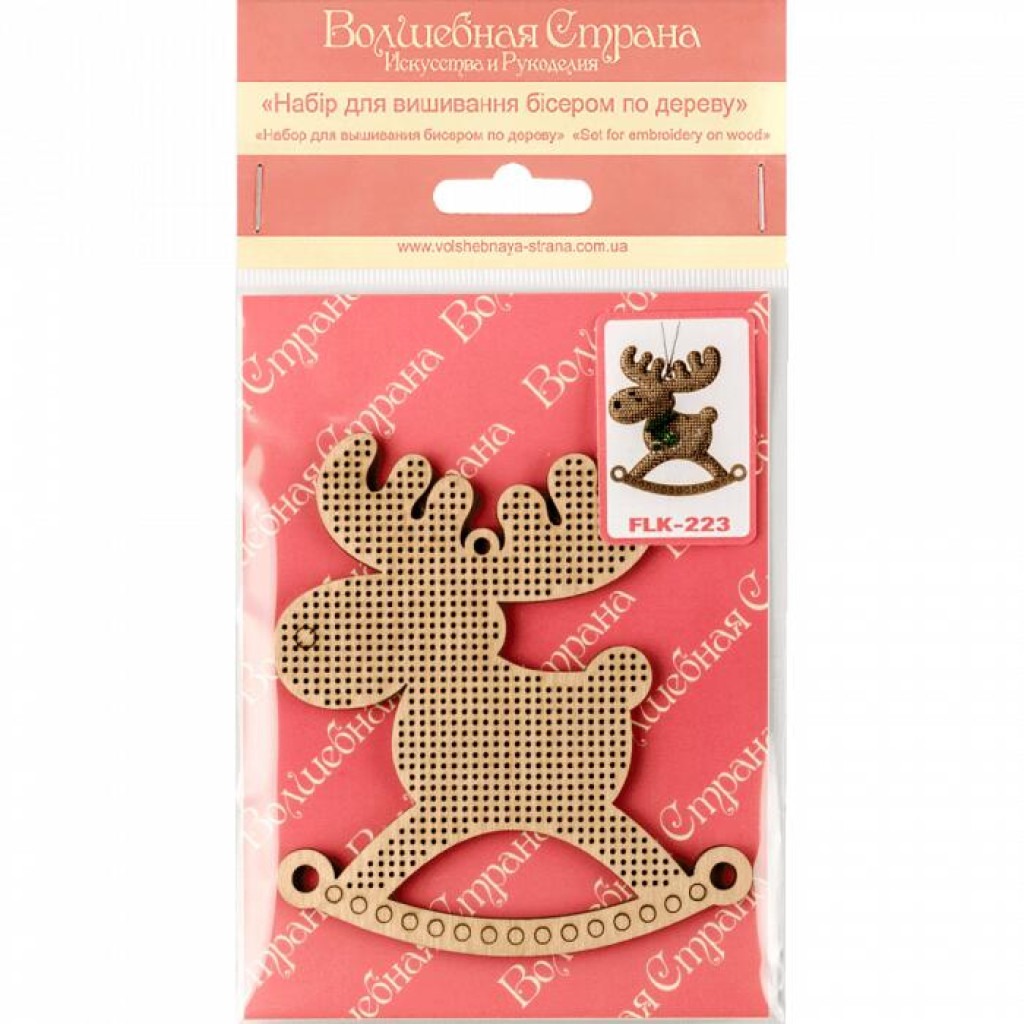 Усередині упаковки FLK-223 Олень ви знайдете фігурну перфоровану заготовку, виконану з високоякісної фанери, інструкцію по роботі з набором, надруковану на папері схему для вишивання із зазначенням квітів і кількості бісеру, використовуваного в наборі, чеський бісер PRECIOSA, нитка і голки для вишивання бісером. Також набір може бути укомплектований фетром (для декорування задньої частини виробу) або магнітом.