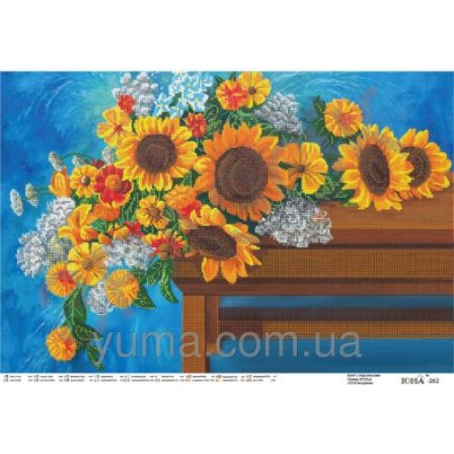 ЮМА-262 Букет с подсолнухами. Схема для частичной вышивки бисером на атласе. ТМ ЮМА