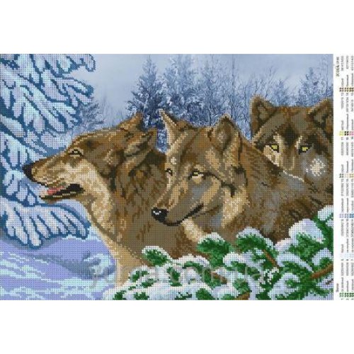 ЮМА-3140 Волки. Схема для частичной вышивки бисером на атласе. ТМ ЮМА