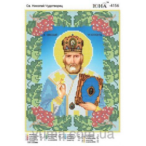 ЮМА-4156 Святой Николай Чудотворец. Схема для частичной вышивки бисером на атласе. ТМ ЮМА