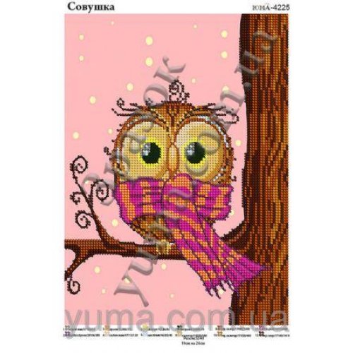 ЮМА-4225 Совушка. Схема для частичной вышивки бисером на атласе. ТМ ЮМА