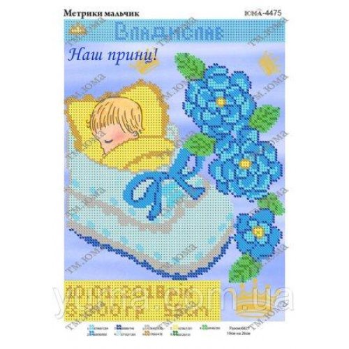 ЮМА-4475 Метрика для мальчика. Схема для частичной вышивки бисером на атласе. ТМ ЮМА