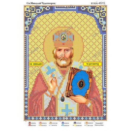 ЮМА-4515 Святой Николай Чудотворец. Схема для частичной вышивки бисером на атласе. ТМ ЮМА