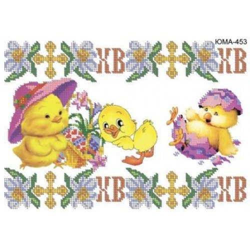 ЮМА-453 Детская пасхальная салфетка. Схема для частичной вышивки бисером на атласе. ТМ ЮМА
