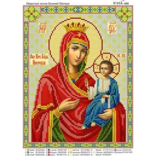 ЮМА-488 Иверская икона Божией Матери. Схема для частичной вышивки бисером на атласе. ТМ ЮМА
