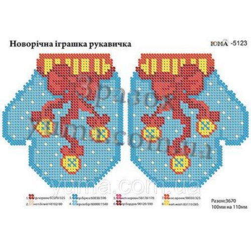 ЮМА-5123 Ёлочная игрушка. Схема-заготовка для полной зашивки бисером на атласе. ТМ ЮМА