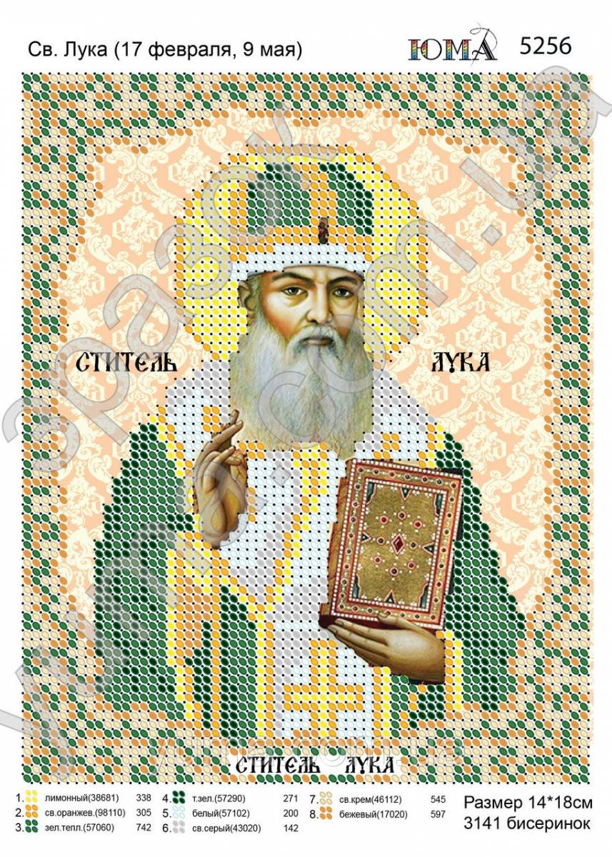 Технічні характеристики: Схема (заготівля) для вишивки на високоякісному атласі , два шари флізеліну термообрізка по периметру індивідуальна упаковка розрахунок бісеру в штуках рекомендована карта кольорів для бісеру Preciosa 10