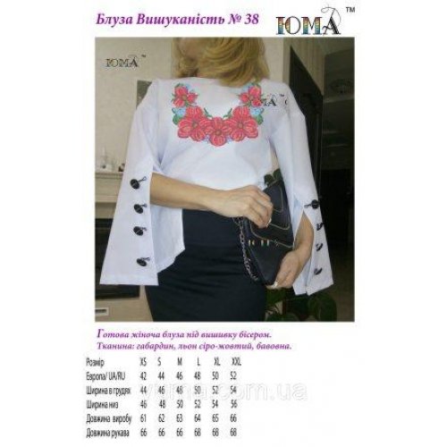 ЮМА-И-38 Изысканность. Сшитая блуза для частичной вышивки бисером. ТМ ЮМА