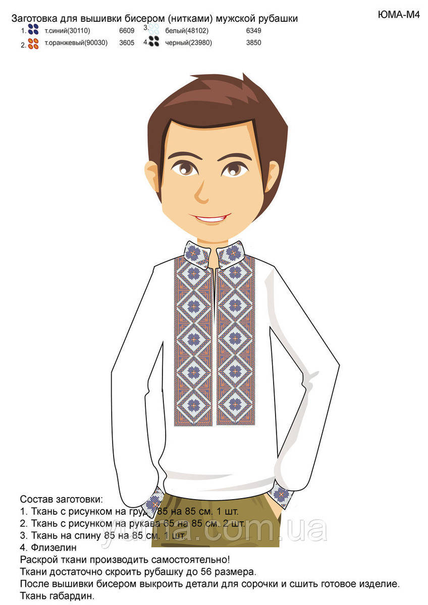 ЮМА-М-05 Мужская рубашка. Схема-заготовка для частичной вышивки бисером или нитками мужской рубашки. ТМ ЮМА