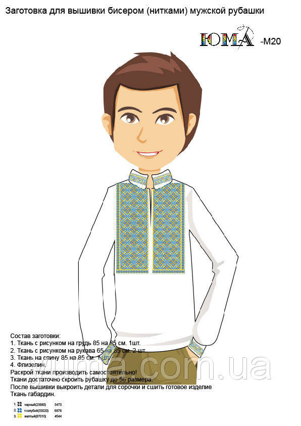 Схема-заготовка для частичной вышивки бисером или нитками мужской рубашки