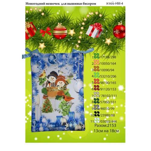 ЮМА-НМ-4 Новогодний мешочек. Пошитый мешочек для частичной вышивки бисером на габардине. ТМ ЮМА