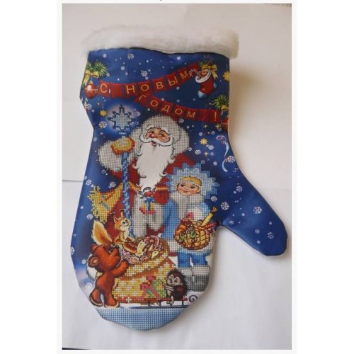 Сшитая заготовка новогодней рукавички для частичной вышивки бисером или нитками на атласе