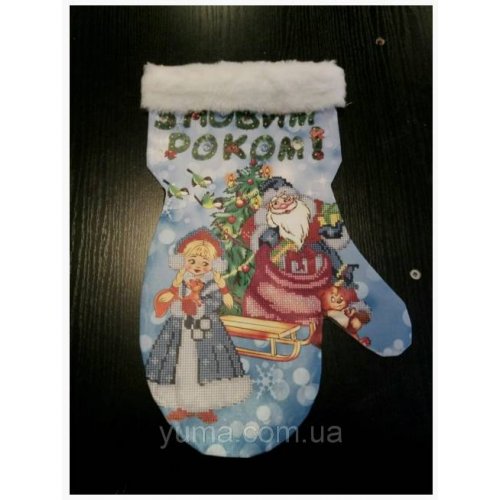 Сшитая заготовка новогодней рукавички для частичной вышивки бисером или нитками на атласе