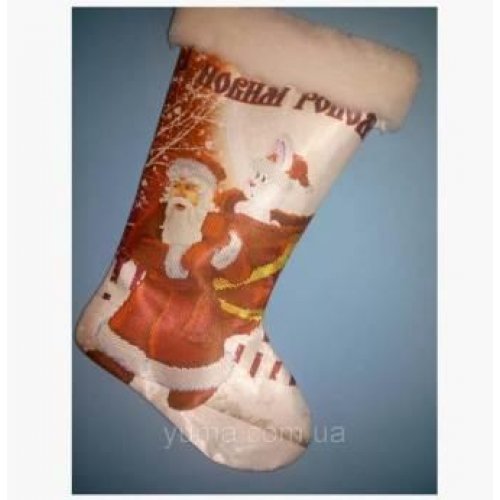 Сшитая заготовка новогоднего сапожка для частичной вышивки бисером или нитками на атласе