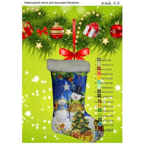 ЮМА-С-09 сшитый Новогодний сапожок. Сшитая заготовка новогоднего сапожка для частичной вышивки бисером или нитками на атласе. ТМ ЮМА