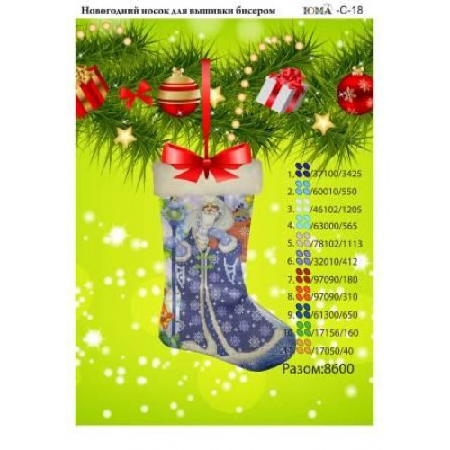 Сшитая заготовка новогоднего сапожка для частичной вышивки бисером или нитками на атласе