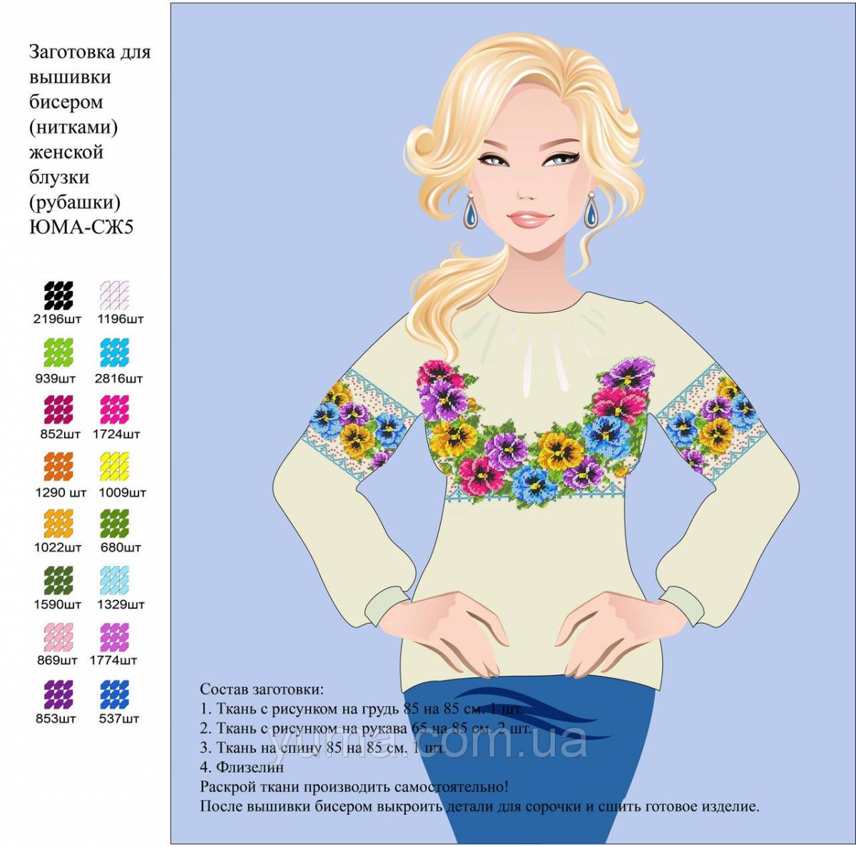 ЮМА-СЖ-04 Женская рубашка. Схема-заготовка для частичной вышивки бисером или нитками женской рубашки. ТМ ЮМА