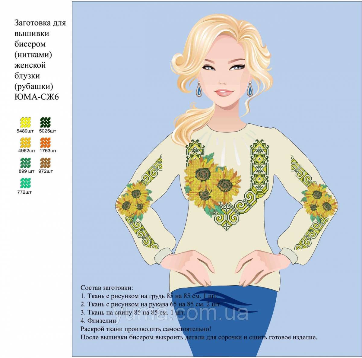 - Ткань с рисунком на грудь: 85 х 85 см (1 шт.)
