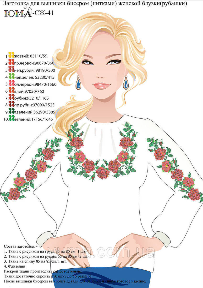 ЮМА-СЖ41 Женская рубашка. Схема-заготовка для частичной вышивки бисером или нитками женской рубашки. ТМ ЮМА