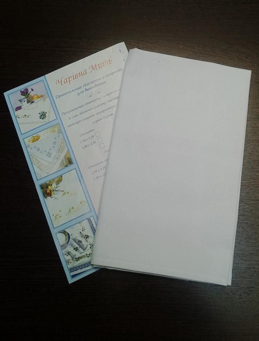 Готовая белая скатерть под вышивку (вставки под вышивку расположены так, как показано на рисунке). Зашивается область по периметру и полосы по всей длине скатерти.