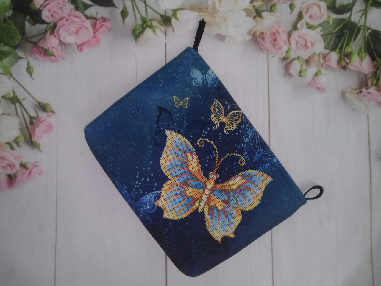 Характеристики виробу: -тканина-габардин -є підкладка -є внутрішній кишеньку — є блискавка -заготівля перед пошиттям — проклеєна двома шарами флізеліну -на виріб нанесена схема — малюнок на одну сторону -блискавка оброблена додатковим ремінним стібком, для зручності в експлуатації Заміри вироби: Довжина — 25 см Ширина — 20 см