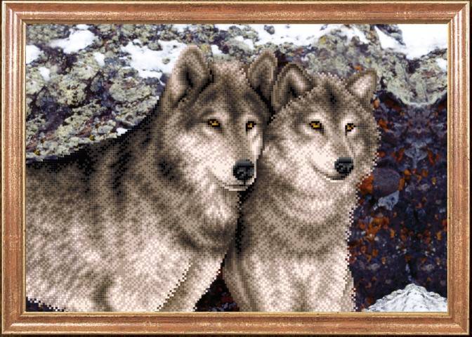 КС-111 Пара волков. Схема для частичной вышивки бисером на габардине. ТМ Магия канвы