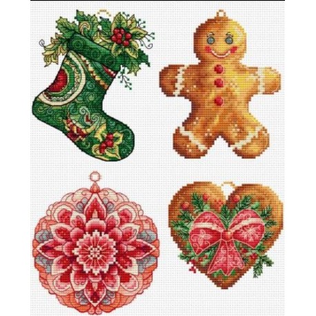 JK043 Ялинкові іграшки. Зимові прикраси 1. 10х15 см Luca-S. Набір для вишивки хрестиком по пластику.
