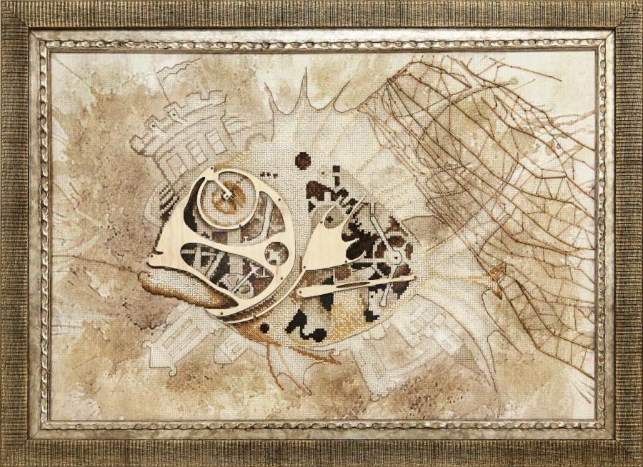 Покиньте пределы наскучившей реальности и насладитесь чарующим миром стимпанка! Вымышленная эпоха паровых машин и привычных символов покорит Вас с первого взгляда. В наборе для частичной вышивки крестом «Загадочный улов» от «Чарівна Мить®» Вы увидите нечто совершенно потрясающее: рыбу, несущую на себе города, механическое существо, наполненное глубочайшим смыслом.