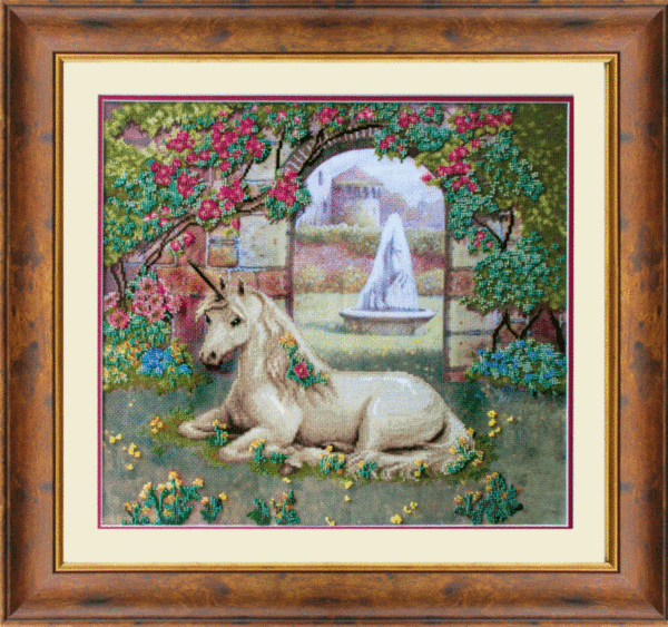 В набор входит: инструкция, цветная символьная схема, бисер Preciosa Ornela (Чехия) — 15 цветов, мулине Madeira — 22 + 2 смешанных цвета, ткань для вышивания с нанесенным рисунком и иглы.