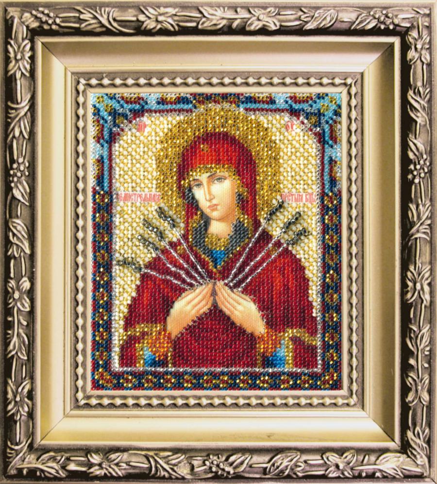 Предлагаем Вам создать уникальную работу вместе с набором для вышивки ювелирным бисером «Икона Божьей Матери Семистрельная» от «Чарівна Мить®».
