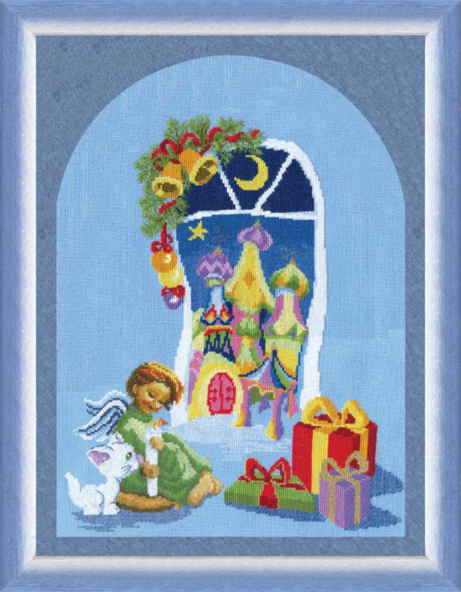 В набор входит: инструкция, цветная символьная схема, канва хлопок 60 клеток в 10 см, мулине (ПНК им. Кирова) и игла.
