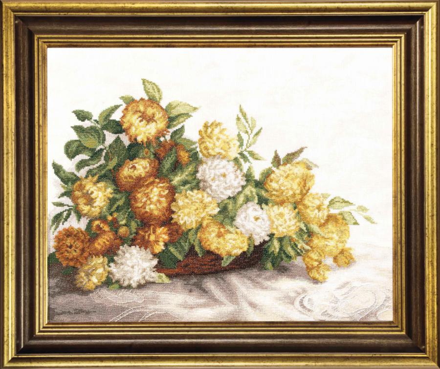 Пушистые бутоны символизирую любовь и радость, счастье и достаток. Конечно же, речь идет о роскошных красавцах, представленных в наборе для вышивки крестом «Желтые хризантемы» от «Чарівна Мить®».