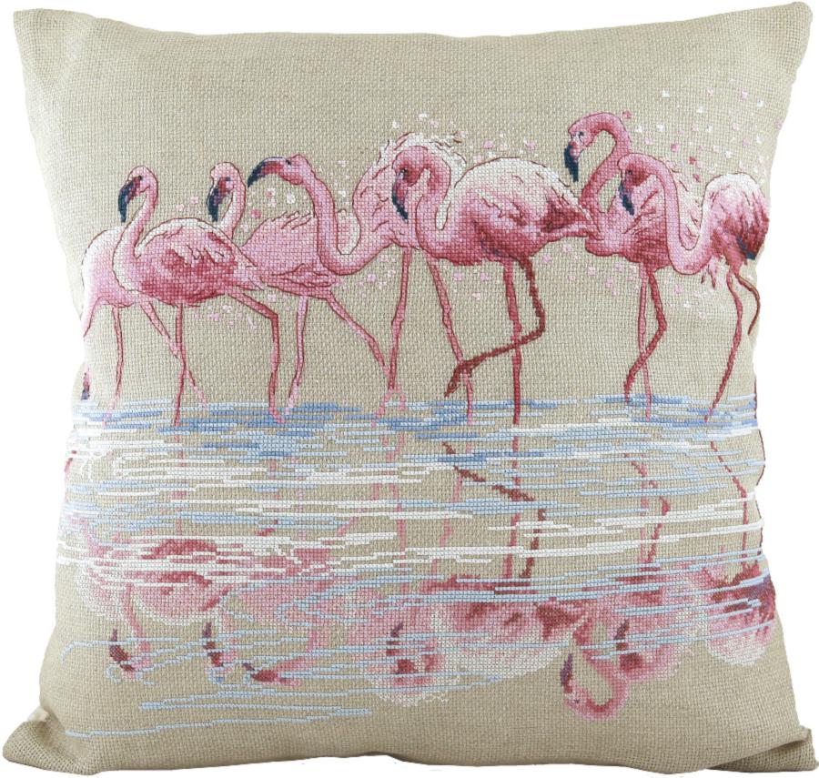 С помощью данного комплекта Вы сможете смастерить чудесную подушку, украшенную изображениями розовых птиц.