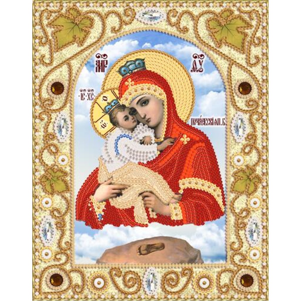 У набір входить все необхідне для створення картини: атласна тканина з нанесеним малюнком і ексклюзивною схемою, потрібну кількість високоякісного бісеру Preciosa Ornela (Чехія), пришивні камені, перлинні намистини і золотий стеклярус, спеціальна голка для бісеру, докладна інструкція.